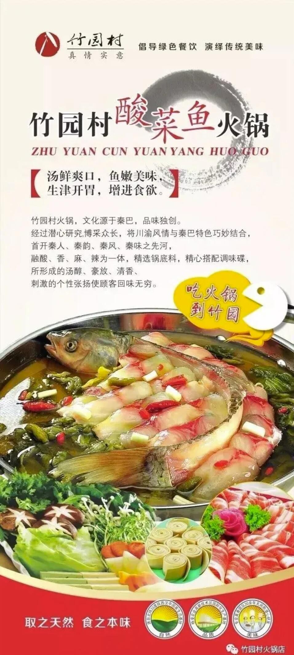 竹园村火锅的酸菜鱼好吃,源自于竹园村的酸菜好!位于北纬33度的汉中洋县,这里生物资源极为丰富,气候温润,特别适合农作物生长。竹园村的青菜,选用本地未经改良过的传统青菜品种,种植过程中不使用化肥和农药,确保蔬菜新鲜度和安全性。