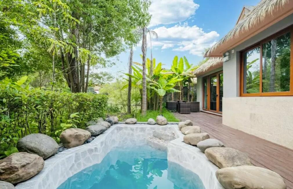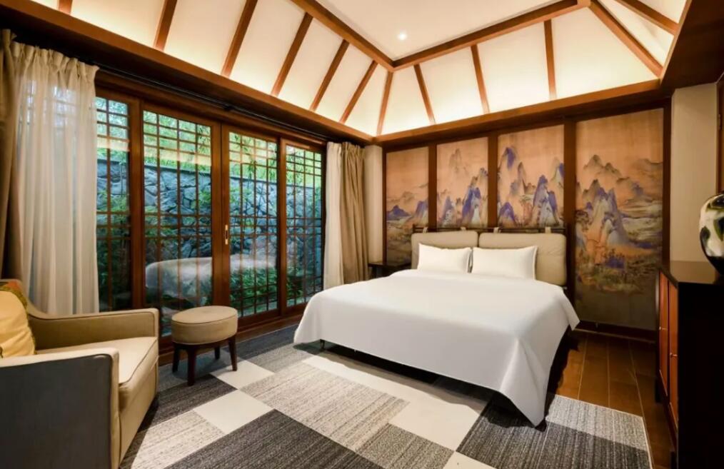青莲·欧洲院子酒店集住宿、餐饮、休闲、品茗、宴会、婚庆于一体,酒店在房间的设计和设施配套上旨在为住客提供最佳住宿体验,酒店共有24间不同诗歌主题的房间和5栋独立私汤温泉院落,还配有3500平米超大私享绿地、300平米花园泳池、咖啡厅、宴会厅和多功能会议厅等配套设施,是远离喧嚣的城市诗意花园。